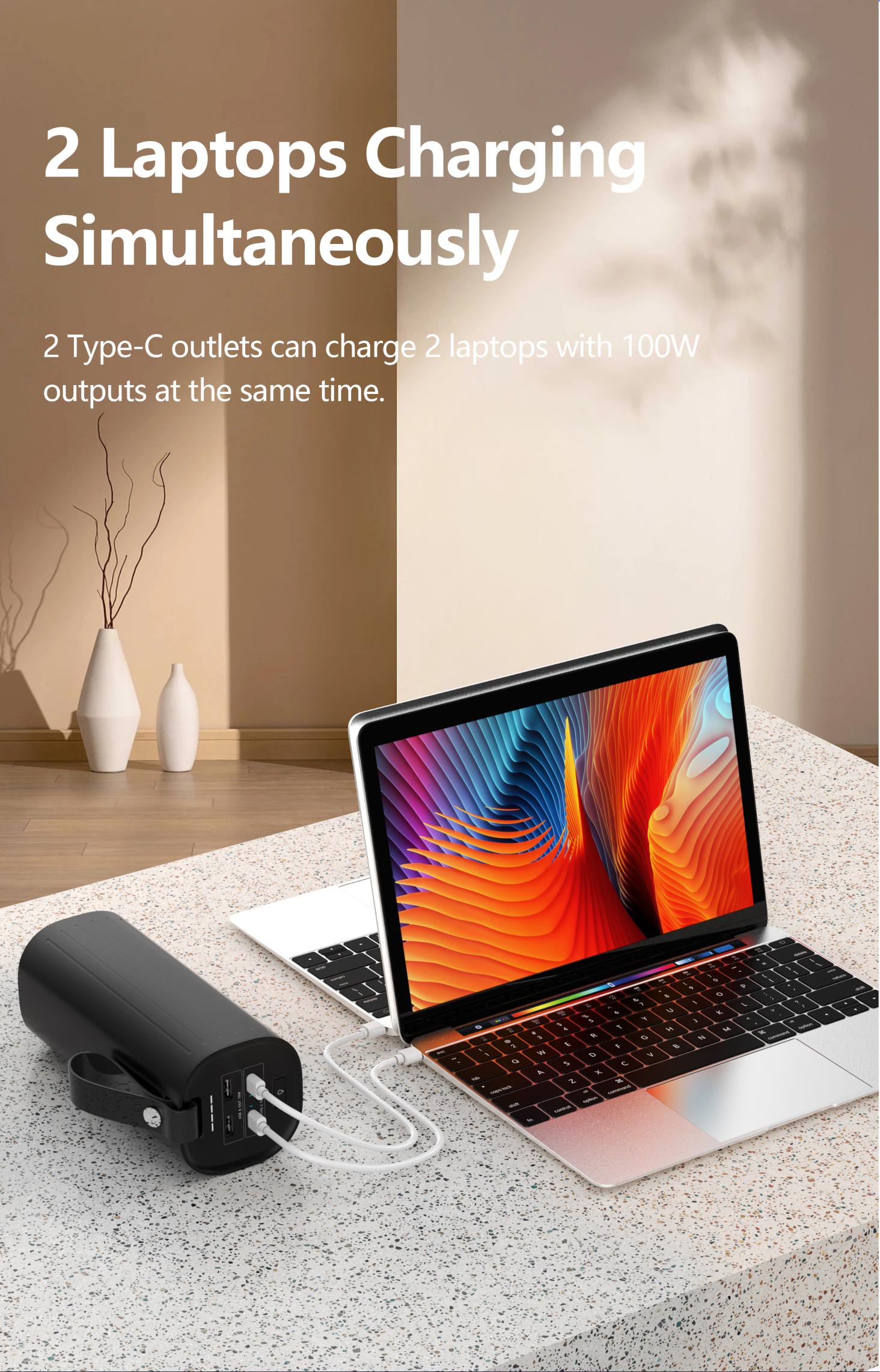• FAST CHARGING | It can be fully recharged in just 2 hours using a 100W PD wall charger (not included). In addition, the power bank can also be recharged less fast through the original USB-C PD power supply of his laptop, smartphone or tablet.
