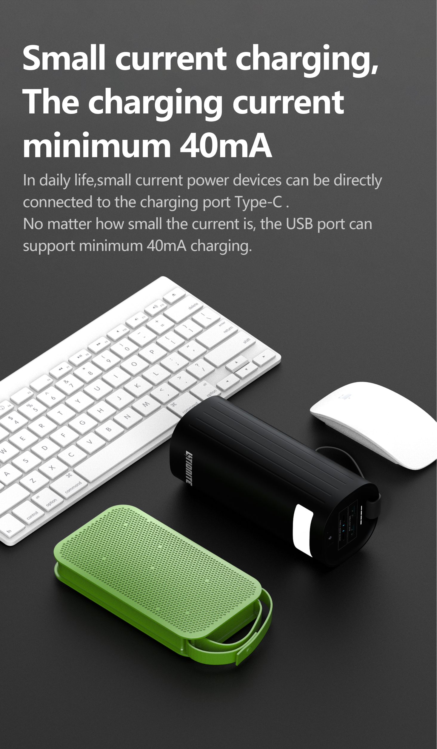• LOW CURRENT RECHARGE | It automatically handles the ability to recharge small devices with very low currents, such as watches (smart watches) and Bluetooth headsets.
