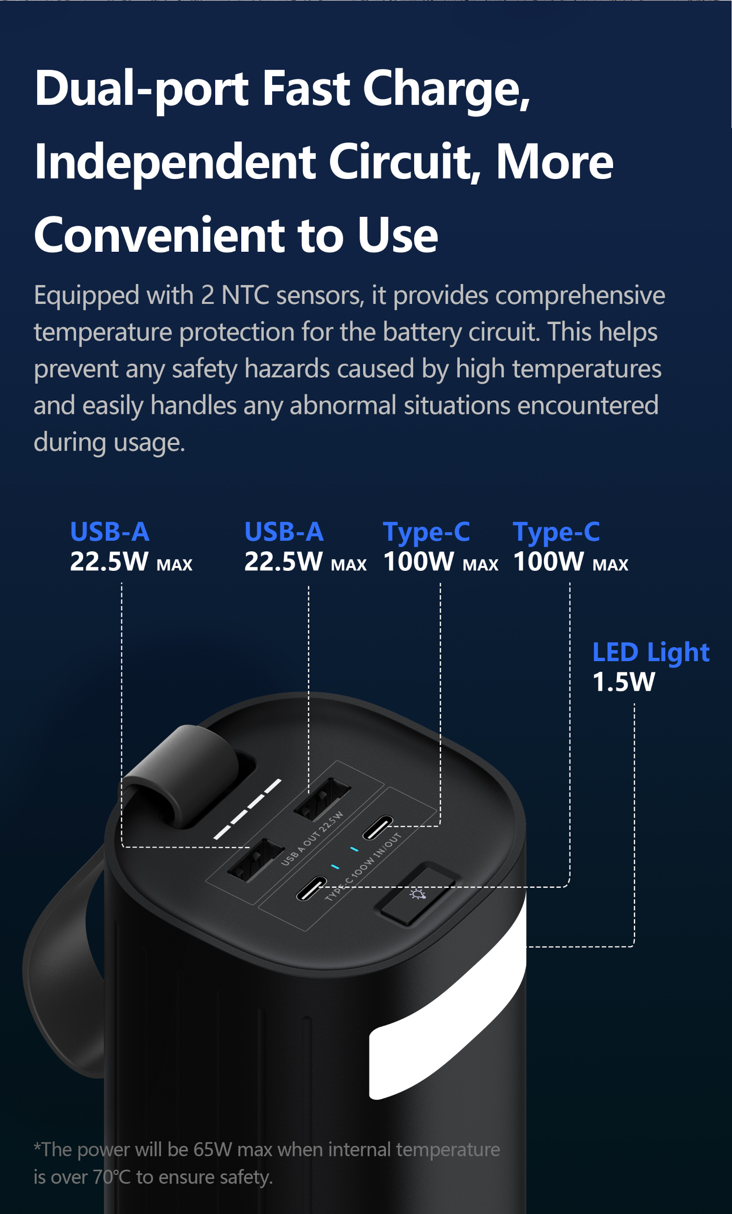 • SAFETY GUARANTEED | Multiple Smart Protection System. Built-in safeguards keep your devices safe from over-charging, over-voltage, over-current, and short circuit.